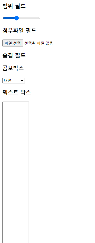 | <textarea> 태그 | 여러 줄의 텍스트를 입력할 수 있는 입력필드를 추가한다 |