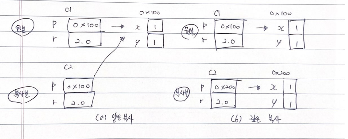 원본과 복제본이 같은 객체를 공유하므로 완전한 복제로 보기에는 어렵다. 이러한 경우를 얕은 복사 라고 한다.