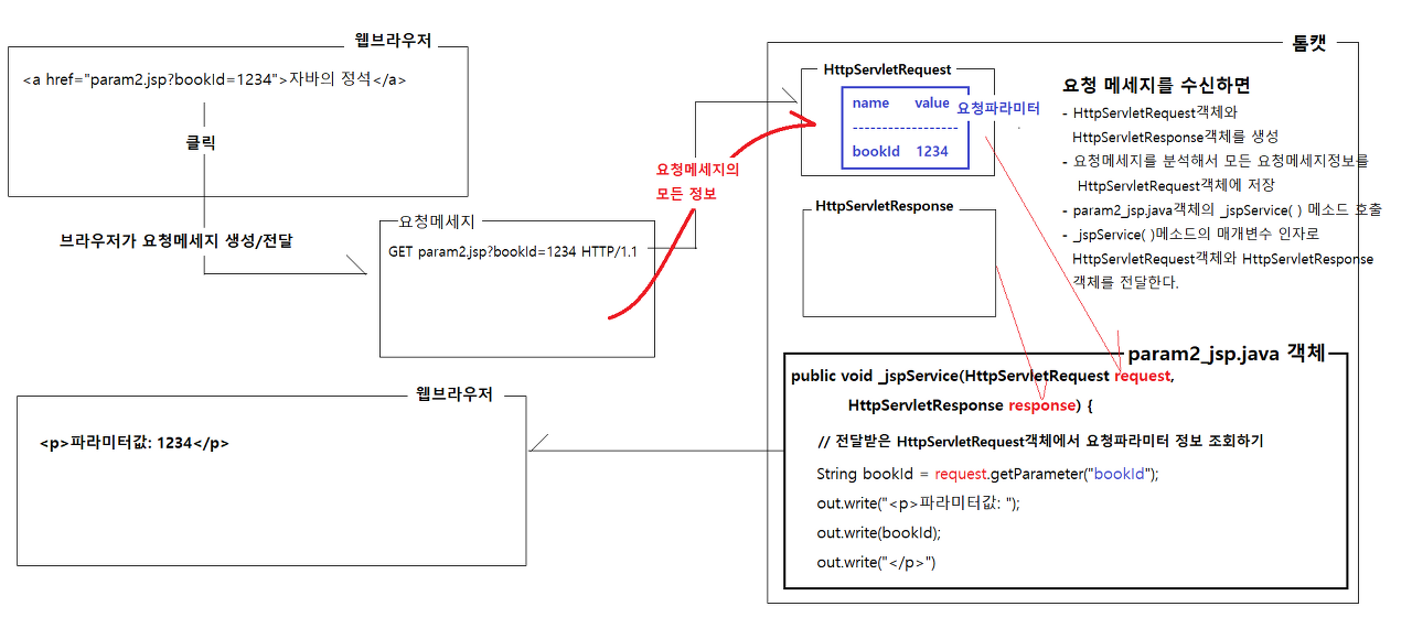 - 여러 개의 요청 파라미터를 전송할 경우에는 '&'를 사용하여 연결한다