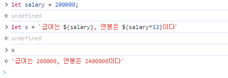 // ' ` ' 백틱이라고 부르고 대부분 키보드에서 물결과 같이 있는 키다