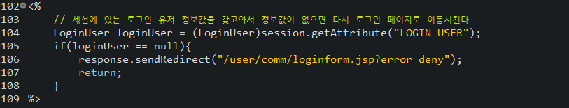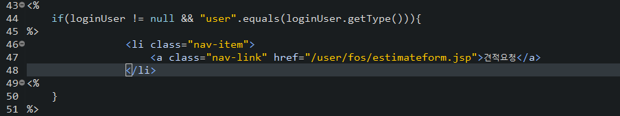 그래도 url을 통해 들어오는 것을 방지하기 위해 견적요청폼 페이지에도 따로 코드를 넣어놨다 (아래 코드 사진)