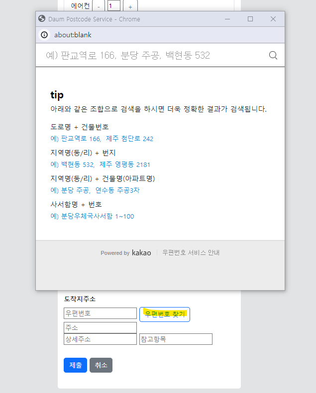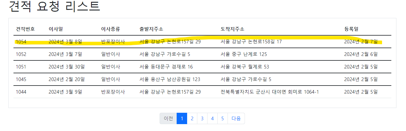 견적을 다 작성해서 제출버튼을 누르면 alert 알람이 나오면서 견적이 완료됬음을 알 수 있다