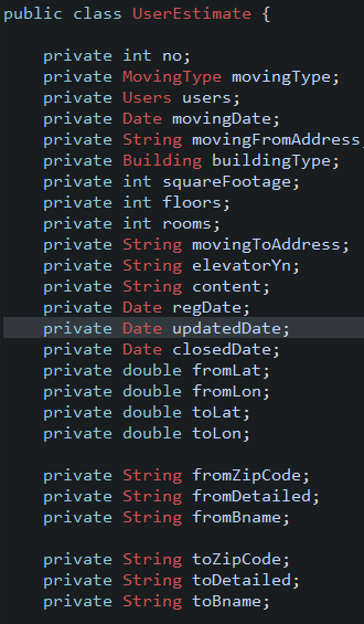 받아온 값들을 다 UserEstimate 객체에 저장하는 과정이다