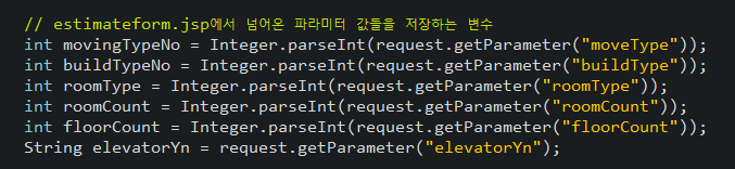 estimateform.jsp 에서 제출버튼을 누르면 estimate.jsp로 각 파라미터 값들을 보낸다
