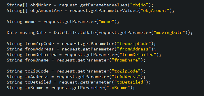 그 보낸 값들을 저장하는 코드가 위 사진첨부한 코드이다