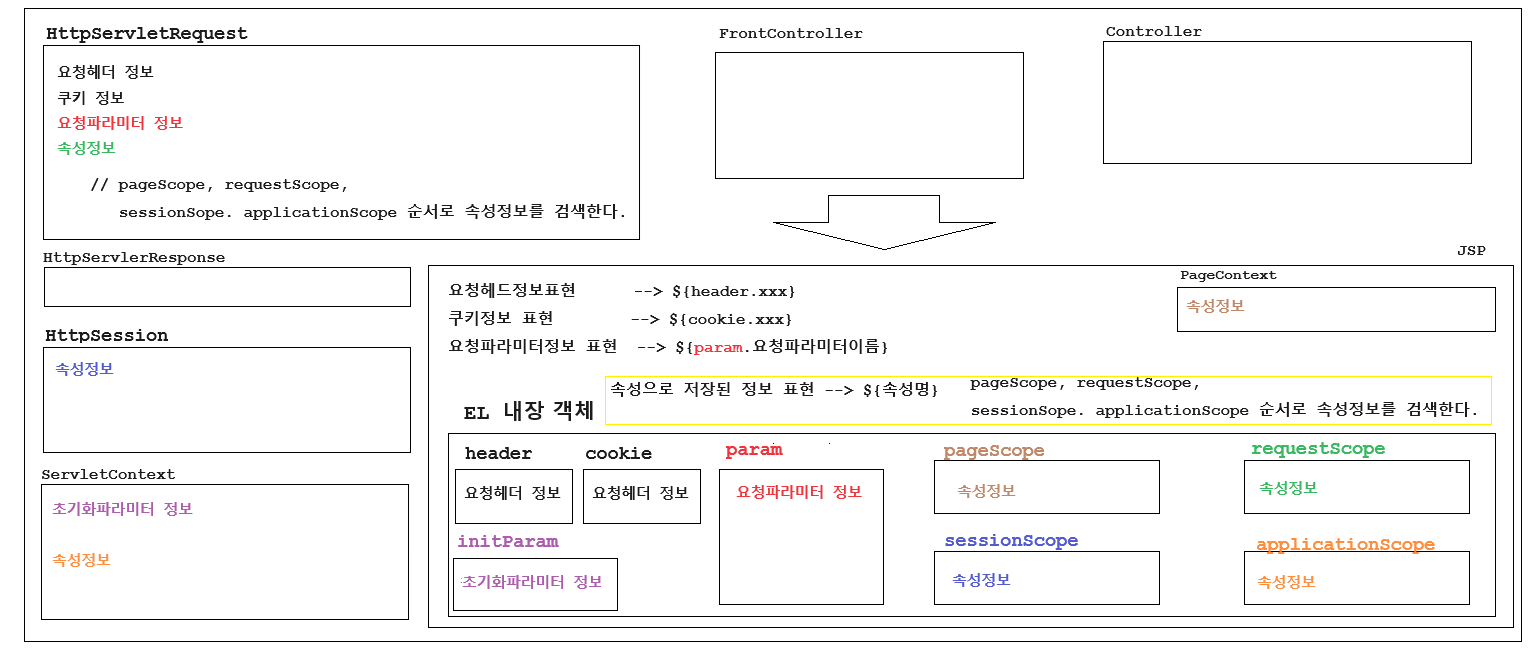 | cookie | ${cookie.쿠키명} | 쿠키명에 해당하는 쿠키값을 조회한다 |