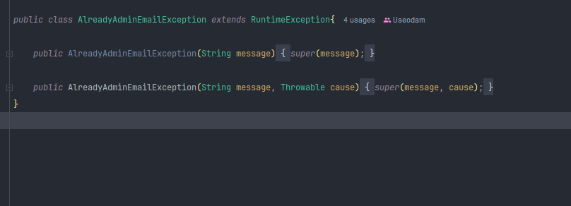 만약 null이 아니라면 AlreadyAdminEmailException 예외를 발생시켜서 메세지를 전송