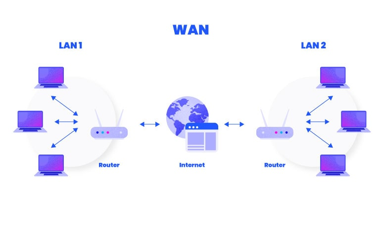 WAN(Wide Area Network) : 집 밖이나 회사 건물 밖처럼 비교적 먼 거리에 위치한 컴퓨터들과 연결된 것