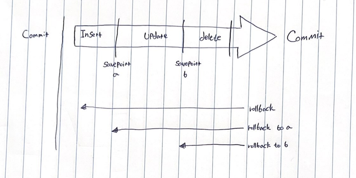 - ROLLBACK TO SAVEPOINT문을 써서 SAVEPOINT까지 ROLLBACK 할 수 있다
