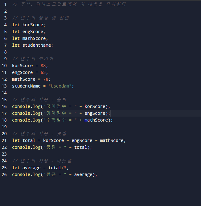 let total = korScore + engScore + mathScore;
