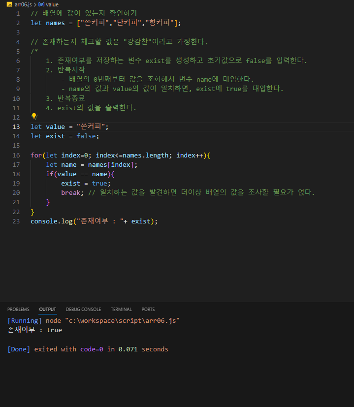 for문을 활용해서 배열안에 있는 값들을 비교할수도 있다