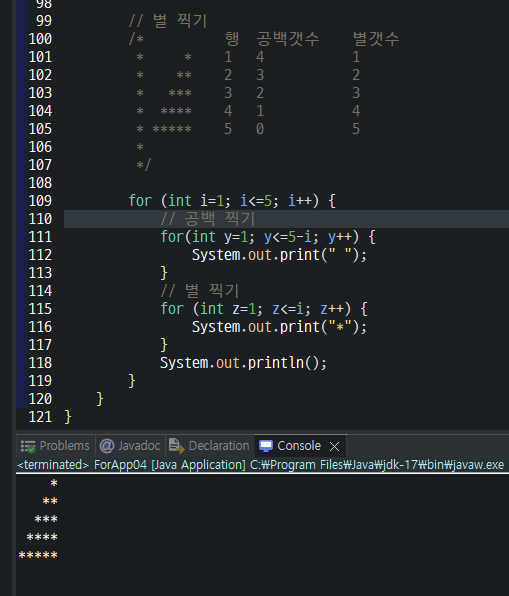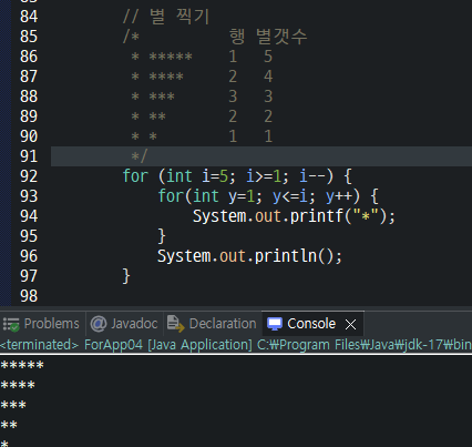- for문의 초기식에 생성한 변수는 조건식, 증감식, 블록내 수행문에서만 사용가능하다