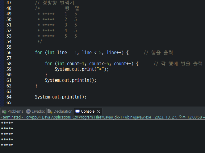 for문은 지정된 반복횟수만큼 블록내 수행문을 반복수행한다