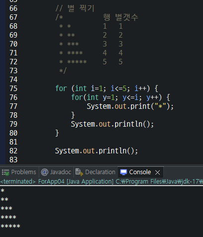 - for문은 초기화식, 조건식, 증감식으로 구성되어 있다