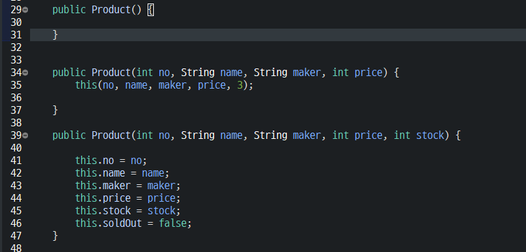 public Product(int no, String name, String maker, int price, int stock) {