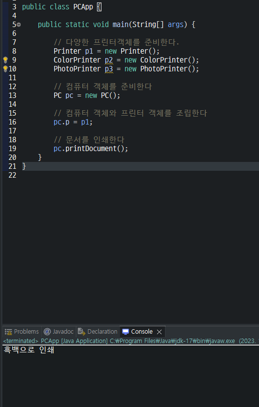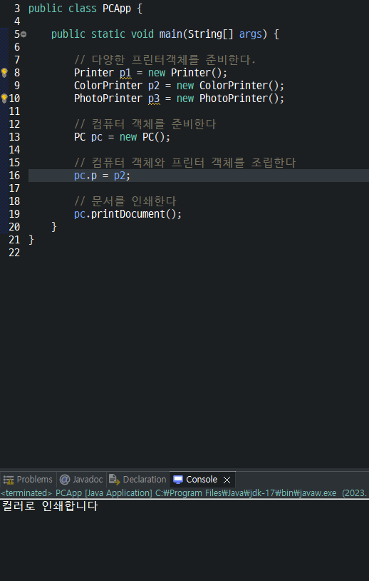 // 컴퓨터 객체와 프린터 객체를 조립한다
