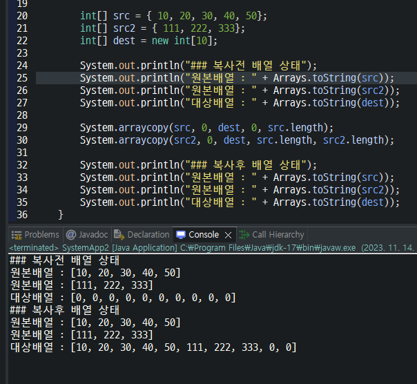 - srcPos : 원본배열의 복사시작위치
