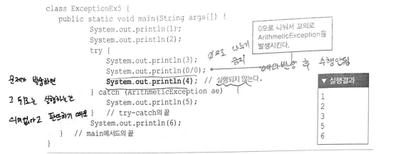 고의로 산술에러를 발생시킨 다음 System.out.println(4); 에 대한 부분이 출력되지 않았는데