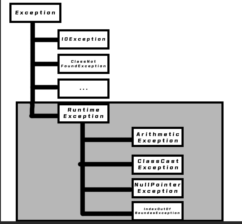 [ 예시로는 NullPointException / ArrayIndexOutOfBoundException 등이 있다. ]