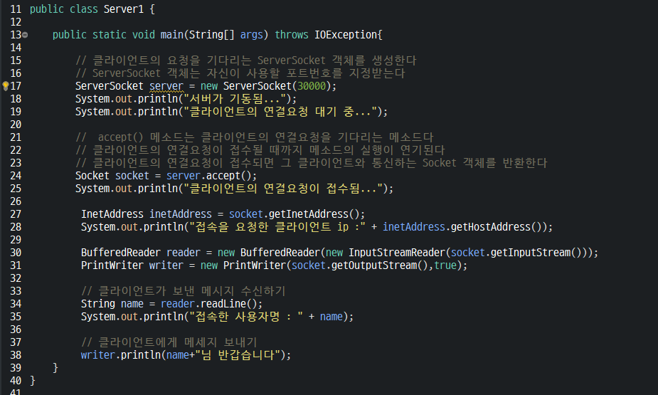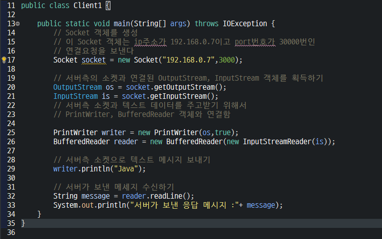 - 자바에서는 Socket객체끼리 데이터를 교환한다.
