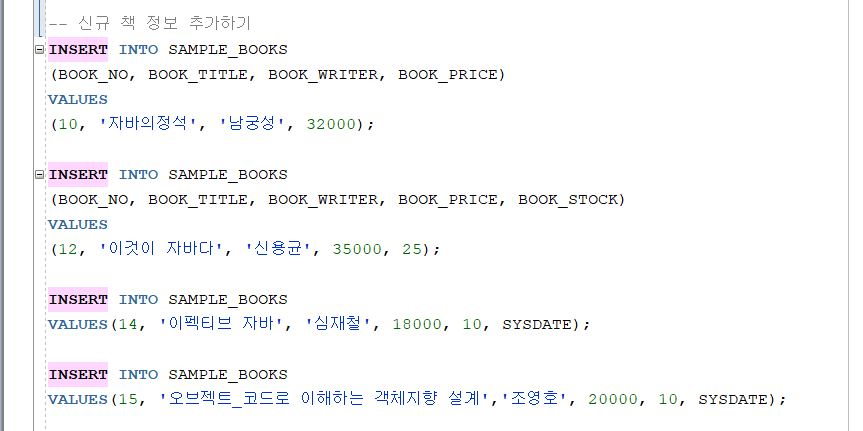 INSERT INTO 테이블명 (컬럼명, 컬럼명, 컬럼명)
