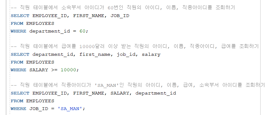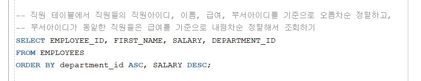 - ORDER BY 절은 SELECT문의 맨 마지막에 써야한다