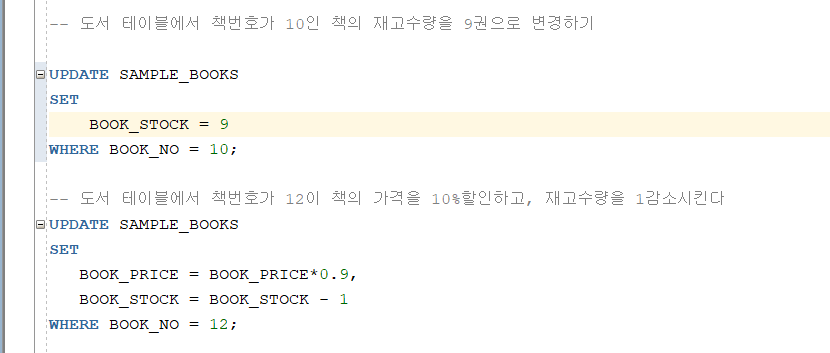 -- WHERE 조건식이 있으면 조건식을 만족하는 행에서만 해당 컬럼의 값을 변경한다.