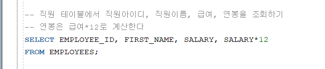 - SELECT절, WHERE절, GROUP BY절, HAVING절 등에서 산술연산자를 사용할 수 있다