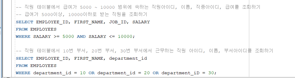 - 두 개이상의 조건식으로 데이터를 제한할 수 있다
