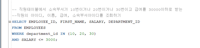 IN (값, 값, 값, ... ) : 컬럼의 값이 제시된 값들 중 하나와 일치하면 TRUE다