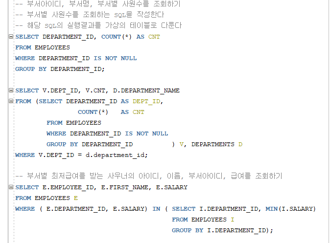 -- 서브쿼리는 가상의 테이블이 포함할 데이터를 조회하는 SELECT문