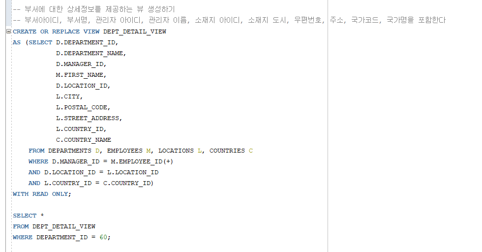 CREATE OR REPLACE VIEW 뷰이름